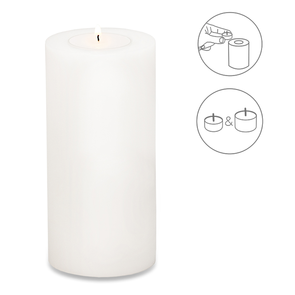 - Stumpenkerze dank austauschbarem Teelicht wiederverwendbar