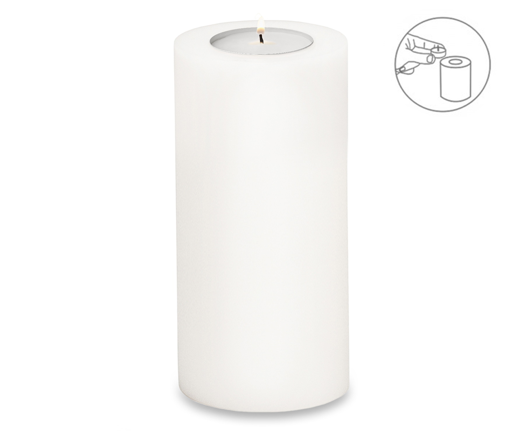 Dauerkerze Cornelius (Höhe 21 cm, ø 10 cm), weiß, Teelichthalter hitzebeständig 90°