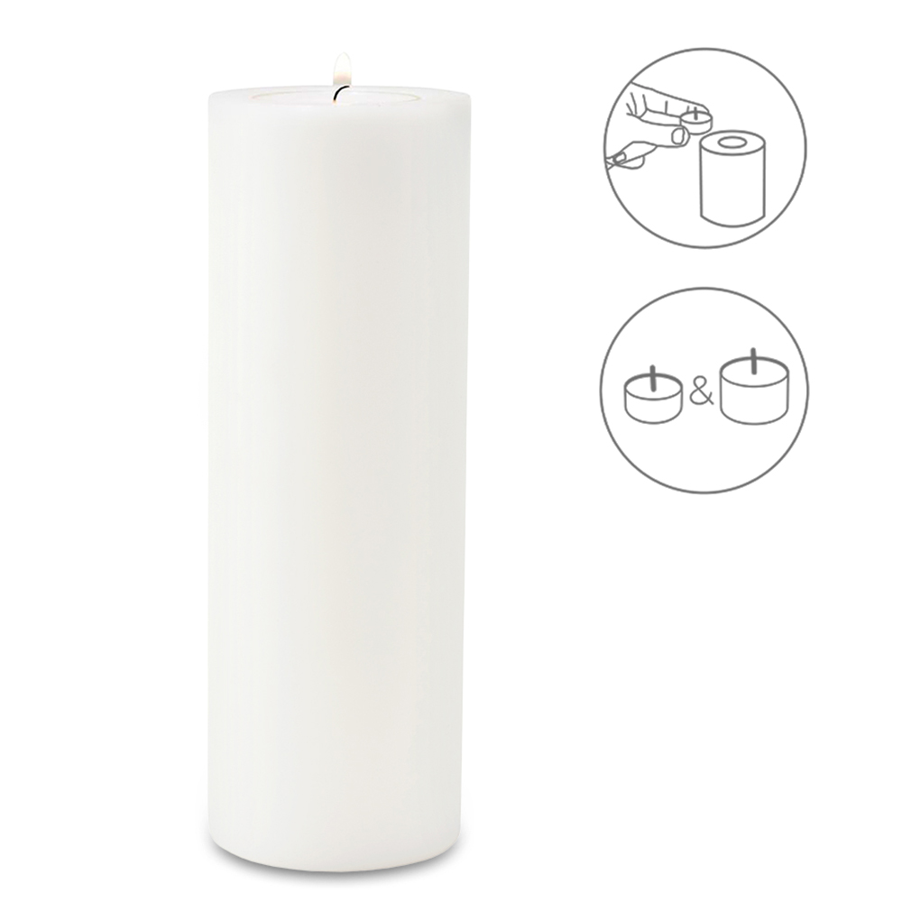 Dauerkerze Cornelius (Höhe 30 cm, ø 10 cm), weiß, Teelichthalter hitzebeständig 90°
