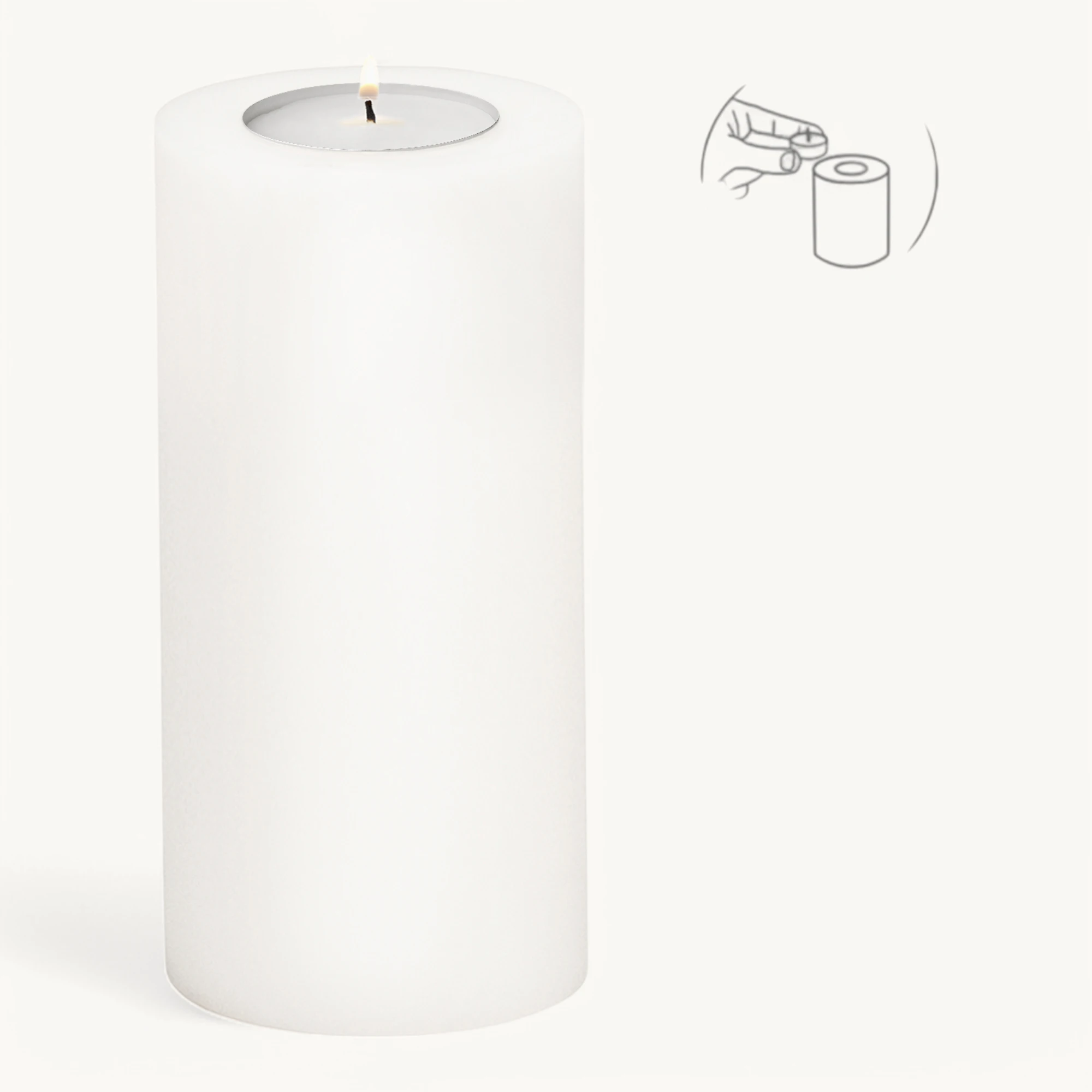 Dauerkerze Cornelius (Höhe 21 cm, ø 10 cm), weiß, Teelichthalter hitzebeständig 90°